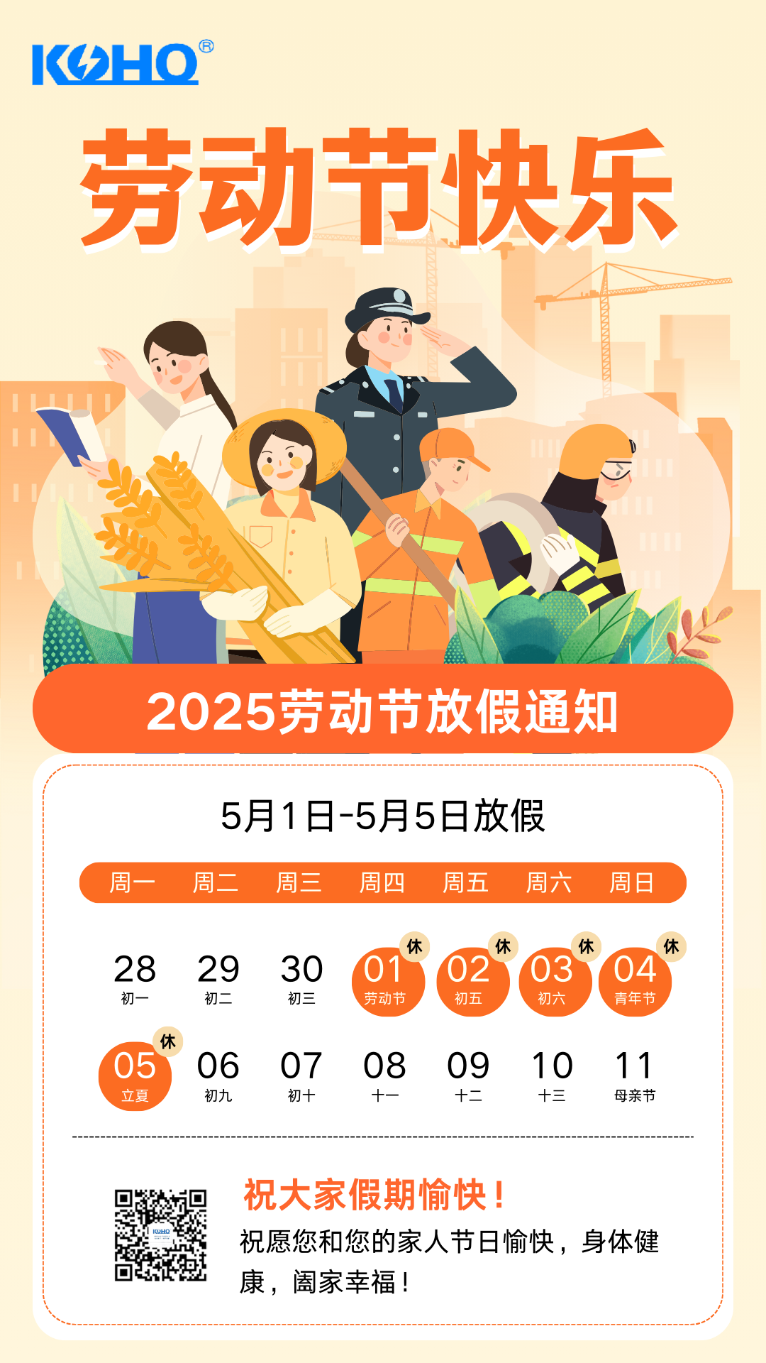 放假時間:2025年5月1日(星期四)至5月5日(星期一),共計5天。5月6日(星期二)恢復(fù)正常上班。